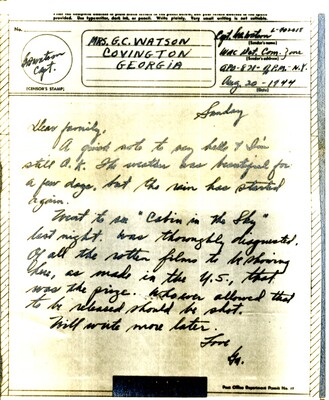 • Letter 16 - To "Family" from Georgia B. Watson, 24 August 1944 by Georgia B. Watson