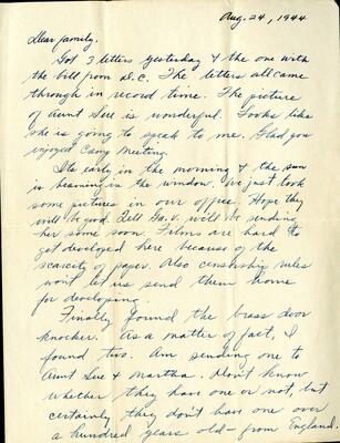 Letter 16 - To "Family" from Georgia B. Watson, 24 August 1944