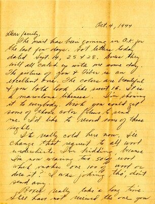 • Letter 21 - To "Family" from Georgia B. Watson, 4 October 1944 by Georgia B. Watson