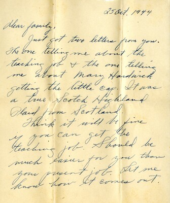 Letter 22- To "Family" from Georgia B. Watson, 6 October 1944
