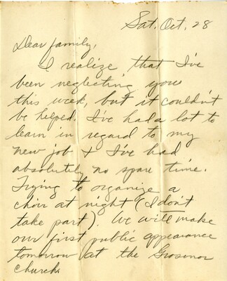 • Letter 01 - To "Family" from Georgia B. Watson, October 1942 by Georgia B. Watson