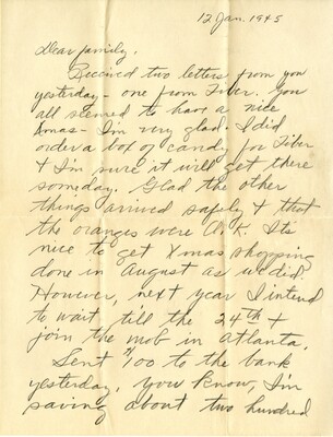 Letter 01 - To "Family" from Georgia B. Watson, October 1942