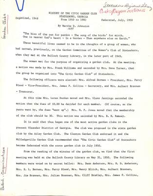 History, Civic Garden Club, Statesboro, Georgia