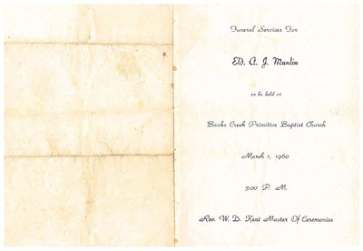 Obituaries, funeral programs, and death certificates relay more than a notice of a person’s passing. They include valuable information that may be difficult to find otherwise, such as where the individual worked, where they attended church, what organizations they were a part of, their education, and names of family members. These brief, personal histories help family and friends learn details of the life of the deceased. Examining a large collection of obituaries can also provide information about large trends within a community and insight into a particular time period, making them important not only to genealogical research, but to local history as well. Obituaries are reflections of the time period in which they were written. The obituaries of African Americans were not typically published in local newspapers until the 1960s, coinciding with the nationwide effort to desegregate. Before then, family members handwrote the deceased’s history, keeping their life stories and accomplishments known only to loved ones. When blacks and whites began to integrate, however, articles pertaining to African Americans, such as coverage of sporting events, school activates, and even obituaries were included in local newspapers and communicated to the wider public, spreading their personal histories to larger audiences. The documents presented in this online collection contribute to the public’s understanding of local African American history by offering a glimpse into popular hymns, Bible passages, and the rhetoric of the community.