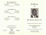 Funeral Program for Mr. Vandlies Shatteen Jr. on March 21 2002 at Tabernacle Baptist Church