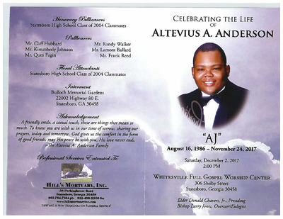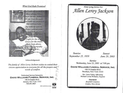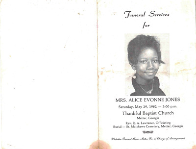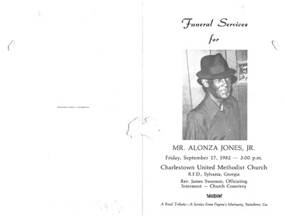 African American Funeral Programs, The Willow Hill Heritage and Renaissance Center, Bulloch County, Georgia database is a collaborative project between The Willow Hill Heritage and Renaissance Center, Georgia Southern University History, and the Georgia Southern University Libraries. The documents presented in this online archive are from the private and active collection of Dr. Alvin D. Jackson, Chairman of the Board of Trustees for The Willow Hill Heritage and Renaissance Center. Over the past 35 years, Dr. Alvin Jackson has collected African American funeral programs from funeral homes, mortuaries and private citizens of the community and many from the area, who left as part of the great migration of African American from 1920 – 1970, and travelled to various parts of the United States looking for new opportunities.